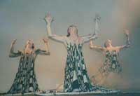 Nicht Sombrero-schwenkende Mariachis, sondern 4 hochprofessionelle Tänzer mit Klassischer und Moderner Tanzausbildung (Strepp- und Graham-Technik) erwarten das Publikum. Ganz und gar nicht klassisch sind die gewählten Themen, geht es in der Choreographischen Retrospektive doch unter anderem um die gerade bei Kindern und Jugendlichen so beliebten MANGAS- Zeichentrickfilme aus Fernost. In plastischen Bildern beschreiben die Tänzer hier die Arbeit des Künstlers im Kampf gegen das weiße Papier. Aus dem Unbewussten des Künstlers erscheinen erst schemenhaft wie in einer flüchtigen Skizze Comic-Figuren, die nach und nach Farbe, Kontur und Leben gewinnen. In der Episode "Die Salzkinder" wird von den Erinnerungen eines Kindes erzählt, das am Meer lebte und an seine bereits verstorbenen Freunde und ihr gemeinsames Spiel ... denkt. Die Choreographie "Collage" zeigt ein Liebespaar, das nie wirklich zueinander kommt. Die "Fischerin" berichtet von 2 phantastischen Wesen, die sich von Sternenstaub nähren. Sympathische Rentner mit einem nicht so ganz idyllischem Alltag sind die zentralen Figuren der nächsten Szenenfolge, mit der CUERPO ETEREO den ersten staatlichen Wettbewerb gewann. Gerade durch die spannende Mischung aus Alltagsthemen, Klassischem Tanz, Akrobatik und den modernen Tanztechniken High und Law Impact nach Strebb gelingt den Künstlern eine ureigene visuelle Konzeption, die sie in Mexiko bisher recht populär gemacht hat. CUERPO ETEREO wird häufig zu Tourneen ins In- und Ausland eingeladen. Mitbegründerin und Leiterin der Tanzkompanie ist Brisa Escobedo- eine angesehene Spezialistin in der Martha-Graham-Technik und langjährige Dozentin an der bekannten Kunsthochschule von Monterrey/Mexiko. Brisa Escobedo erhielt zahlreiche Auszeichnungen und wurde bereits mehrfach zur besten Tänzerin ihres Landes gekürt. Sie war und ist häufiger Gast Internationaler Festivals in Kolumbien, Argentinien, Kuba, Canada, den USA und anderswo. Als Direktor der Kompanie fungiert außerdem der erfolgreiche junge Tänzer und Choreograph Jaime Sierra, der ebenfalls in Mexiko bereits für Aufsehen gesorgt hat, indem er beispielsweise die Choreographien zur Jahrtausendwende mit einem Riesenaufgebot von 400 Tänzern entwickelte. |