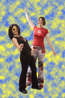Gesang - Perkussion - Gitarre Auf Tournee in Deutschland und nun auch einmalig in Schwerin zu Gast war - nach Konzertreisen durch Lateinamerika das junge erfolgreiche Duo Iguana Azul. Am 08. Juni 2002 gab die "Blaue Eidechse" im Hotel Elefant ein Konzert, das sich zu hören und zu tanzen lohnte und das scheinbar unüberbrückbare Gegensätze verband. "Iguana Azul" wurde von der Brasilianischen Perkusionistin Fabiola Ugarte und der ecuadorianischen Sängerin Karina Clavijo 1997 gegründet. Beide erhielten eine klassische Musikausbildung. "Iguana Azul" ist eine eher elektrische Gruppe. Die Arrangements und Kompositionen ihrer Lieder sowie die Interpretation liegt in den Händen der beiden jungen Musikerinnen. Dies hat ihnen erlaubt, viele Musikstile (traditionelle ecuadorianische und brasilianische Musik in Fusion mit Elementen des Jazz, Rock und Pop) aufzuarbeiten und die Vielseitigkeit hat ihnen Künstlerisch und auf experimenteller Ebene sehr viel Erfahrung eingebracht. So spielen Sie altbekannte karibische und lateinamerikanische Titel auf eine erfrischend neue Art, ohne irgendwie in billige Effekthascherei zu verfallen. Vielmehr loten sie mit Fingerspitzengefühl neue technische und rhythmische Möglichkeiten aus und brillieren auch gesanglich mit überraschenden Nuancen- mal selbstbewusst, locker und witzig, dann wieder kristallklar, sehnsuchtsvoll- einfach schön... - so auch zu hören auf ihrer 1. CD - "IGUANA AZUL - in vivo". Einen Kontrast, wie man ihn sich deutlicher nicht vorstellen kann, bilden die Titel von "Technomorbo"- spannend und phantasievoll setzen sie auch beim Salsa-Techno die Stimmen ein, die -wie nicht anders zu erwarten- stark rhythmische Funktionen übernehmen. Themen der Auseinandersetzung sind -wie sie selbst sagen- alles, was sie "fühlen und mitteilen wollen - ganz ohne Kleinkariertheit und Tabus"- demzufolge geht es mit einem Wortschatz, den man den eleganten jungen Damen so auf den ersten Blick gar nicht zutrauen mag, vorwiegend um die drei Themen Sex, Liebe und Sex. Aber auch anderen gesellschaftlichen Tabus rücken die forschen Musikerinnen erfolgreich zu Leibe, wie u. a. der Triumpf ihres "El Baile del Moco" (in schlichtem Deutsch: "Der Popeltanz") und anderer Titel ihrer "Tecnomorbo"-CD bei zahlreichen Radiosendern Lateinamerikas zeigen. |
